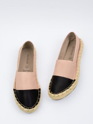 Espadrilles para mujer nude con puntera negra carla, Si tuviéramos que elegir un complemento que describe lo mejor del entretiempo y el verano, sin pensarlo dos veces seleccionaríamos las espadrilles o alpargatas. Su comodidad y versatilidad hacen la pieza perfecta para llevar de la oficina a la playa. Cumplen a cabalidad con los códigos formales y no discriminan looks desenfadados.